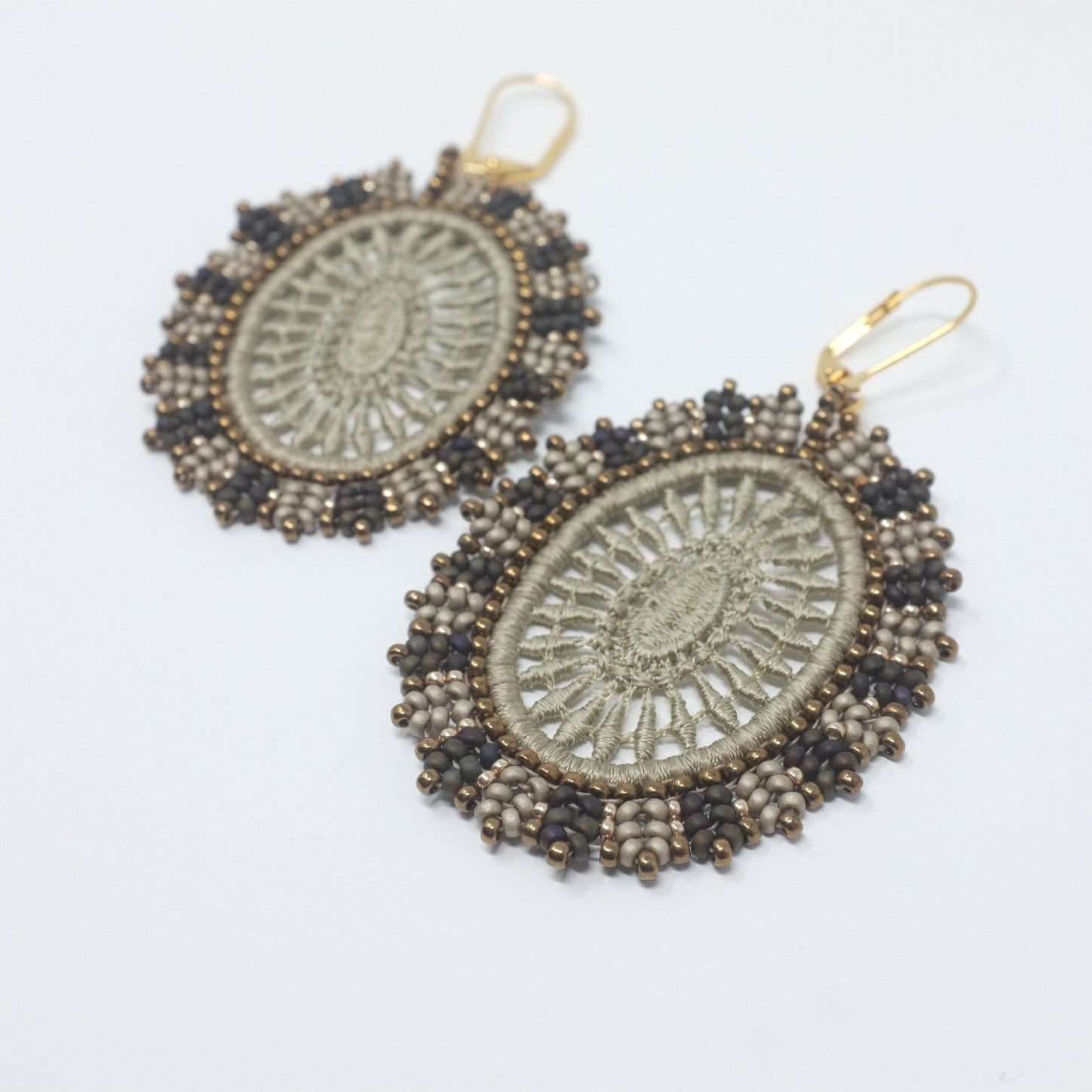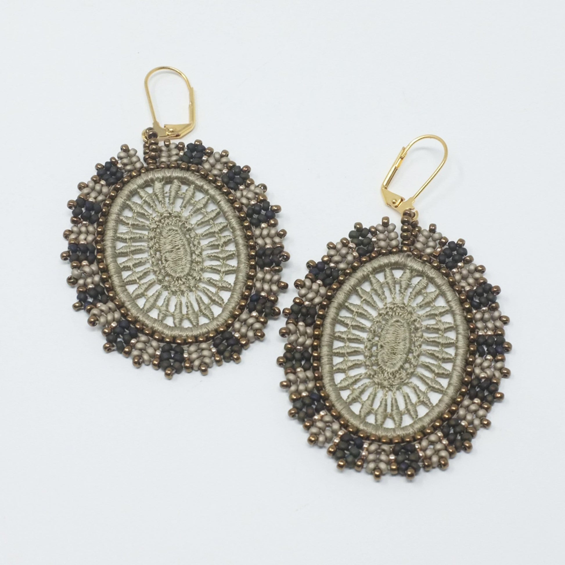 Enjoy a stylish edge with these two-tone beaded lace earrings! Lightweight and unique, these drop earrings feature a matte silver and black crystal bead embroidery pattern that stands out with any outfit. Take the plunge and make a statement with these incredible handmade pieces!