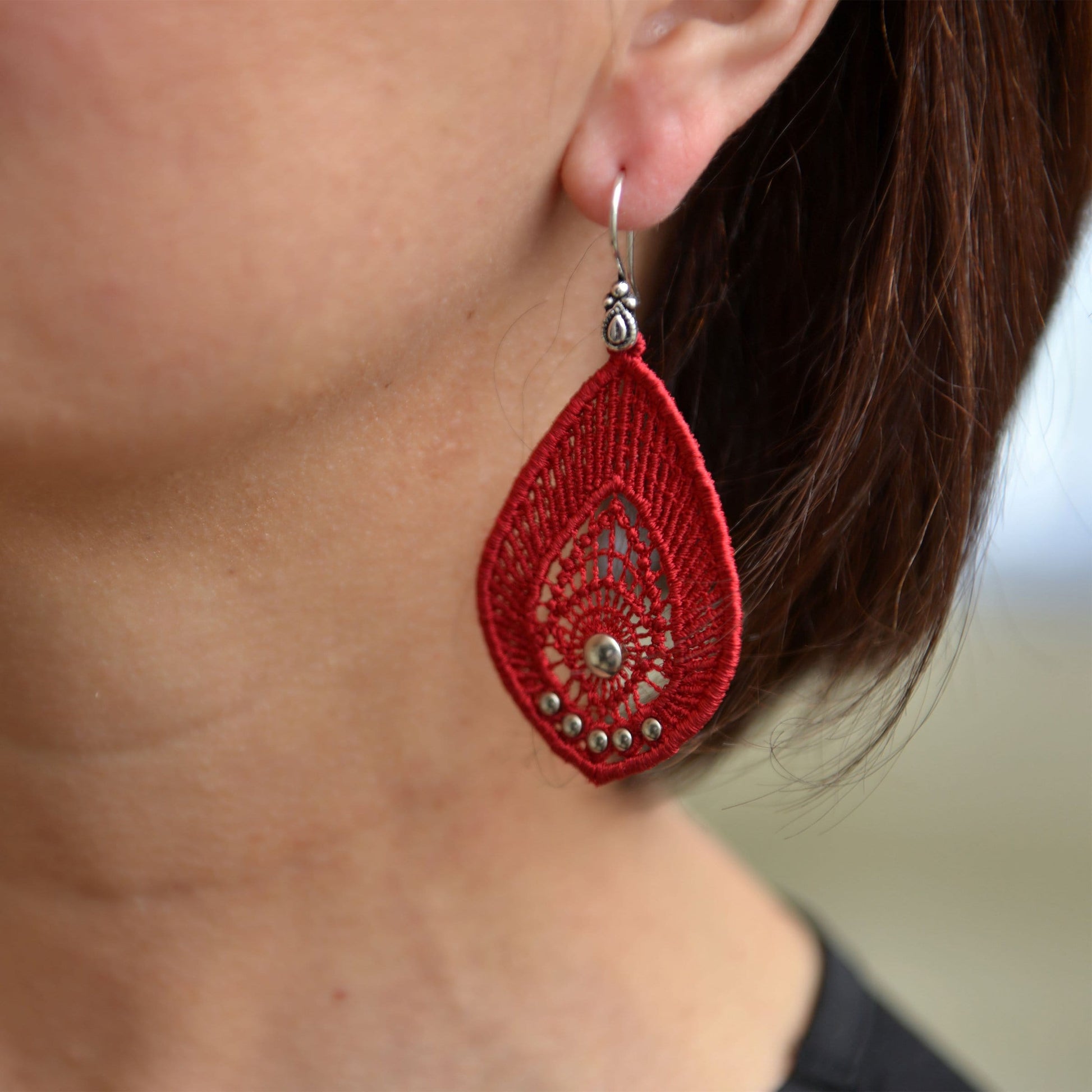 Style Up your outfit with these super-lightweight, long lace earrings created from damage-resistant lace. Give up on those typical earrings that feel heavy on the ear; instead, wear these delicate & sparkly long earrings with a modern vibe that looks sophisticated and has all the ingredients to give you an upscale look. With six brass silver beads arranged in an eye-catching fashion, these delicate lace earrings are sure to become your hot-favorite. Clings to your ears with a smooth antique silver hook.