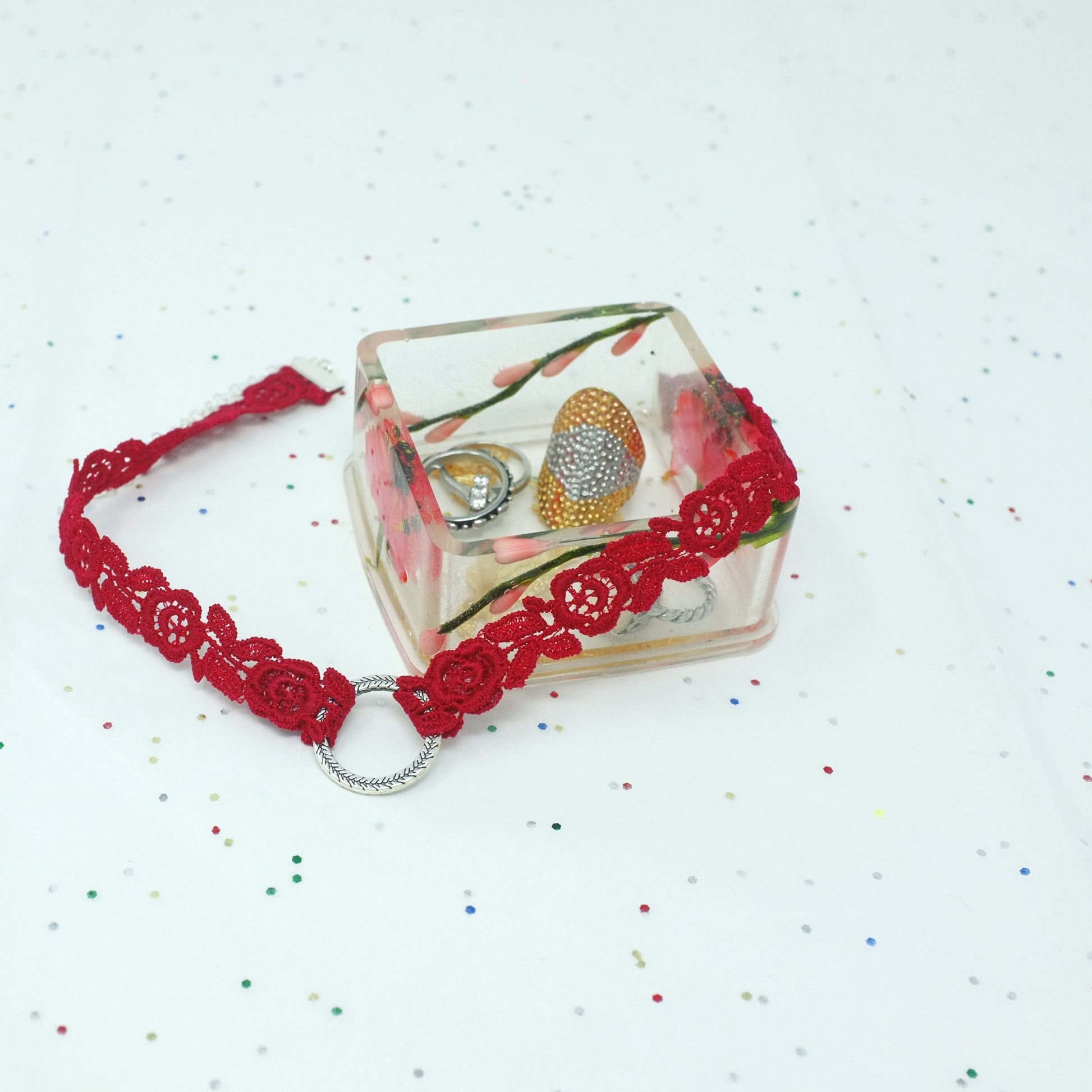 Our Stella Metal Ring Choker is for the woman who loves to make a statement, this red lace choker is the perfect fusion of elegance and boldness. The intricate floral lace pattern speaks to your feminine side, while the striking silver-plated ring adds a modern edge, perfectly reflecting your unique sense of style.